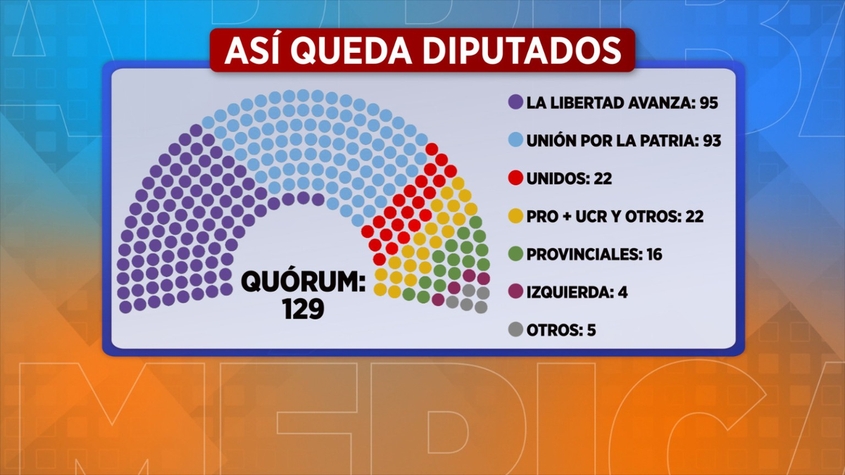 El nuevo mapa abre un segundo capítulo: cómo llegar a los 129 votos de quórum. El PRO, la UCR (oficial) y el MID armaron un interbloque con 22 votos potenciales. Todos los que lo integran fueron como aliados de La Libertad Avanza en estas elecciones o en las anteriores. Con esos ya tiene 117.